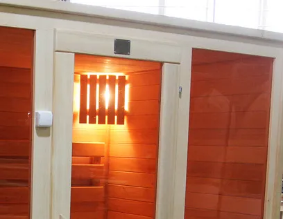 Сауна из кедра с душевой кабиной - это рациональное решение для вашего дома или спа-салона. Деревянный фасад со стеклом преобразит интерьер помещения. Благодаря встроенной душевой кабине можно комфортно завершить процедуру парения.